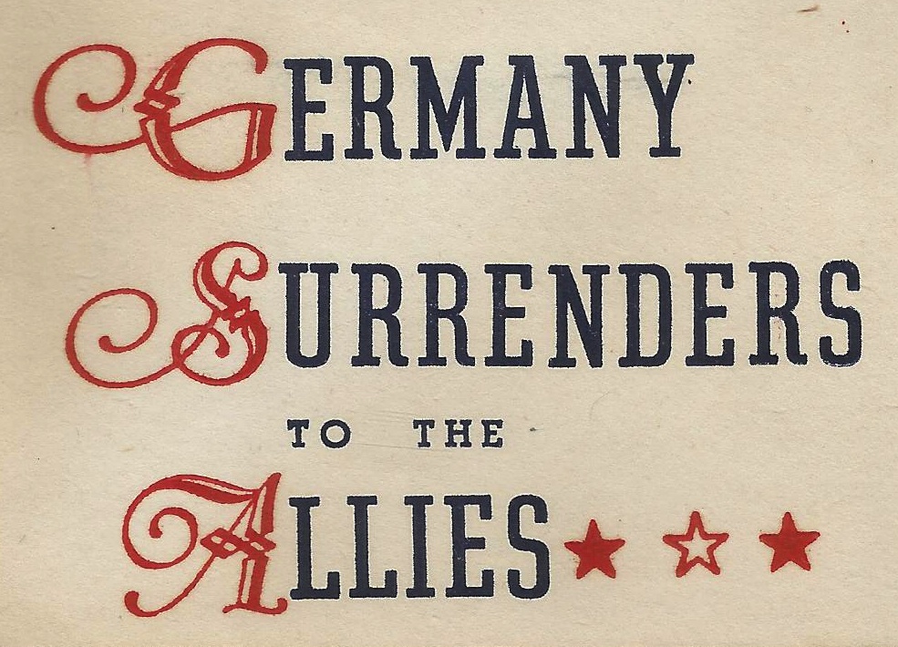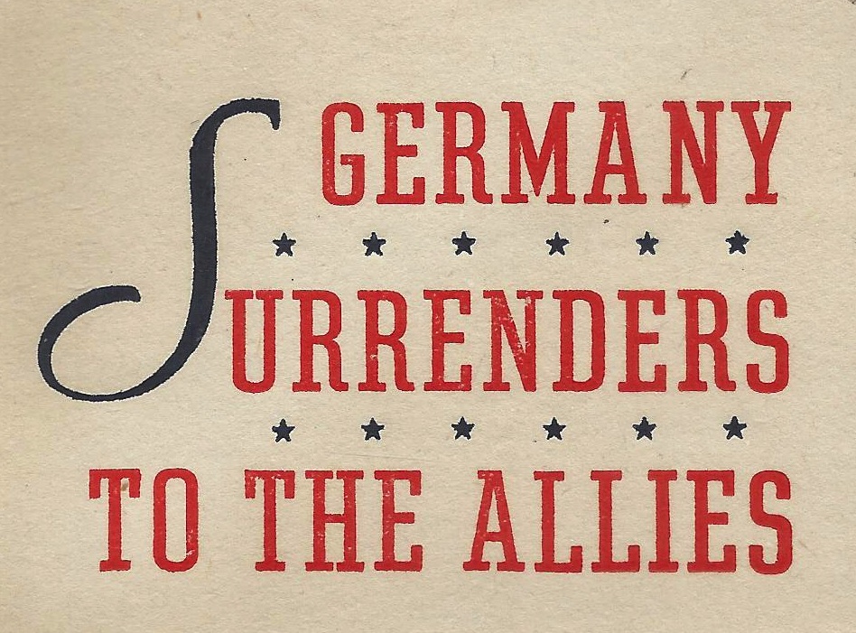 Germany surrenders to the Allies (letters 3mm high) |