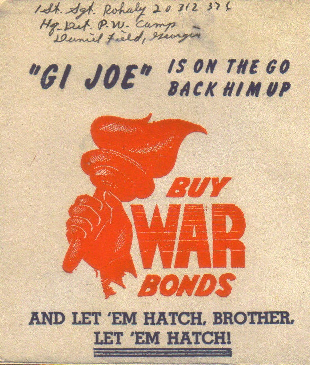 "GI" Joe is on the go Back him up Buy war bonds, etc |