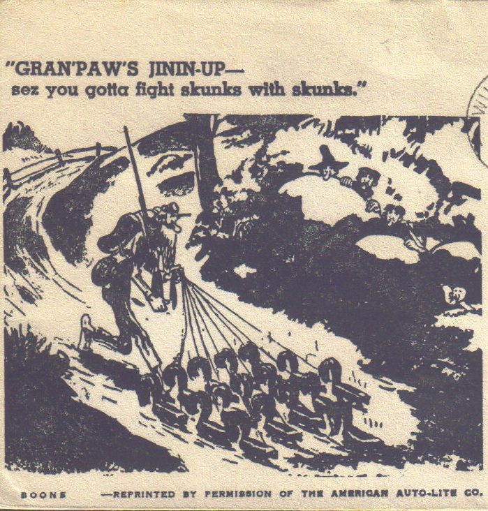 Gran'paw's jinin-up sez you gotta fight skunks with skunks |