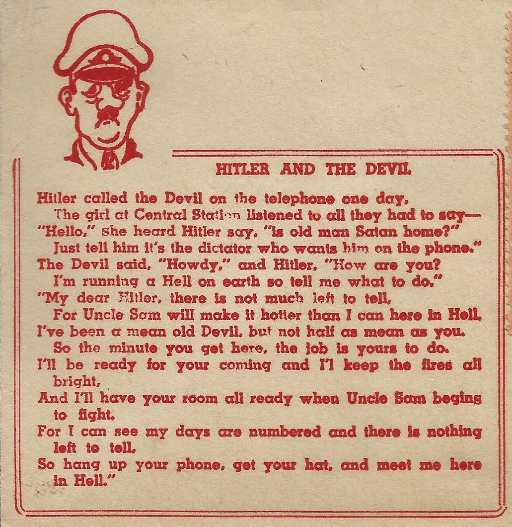 "Hitler and Hell" Hitler called the devil on the telephone etc |