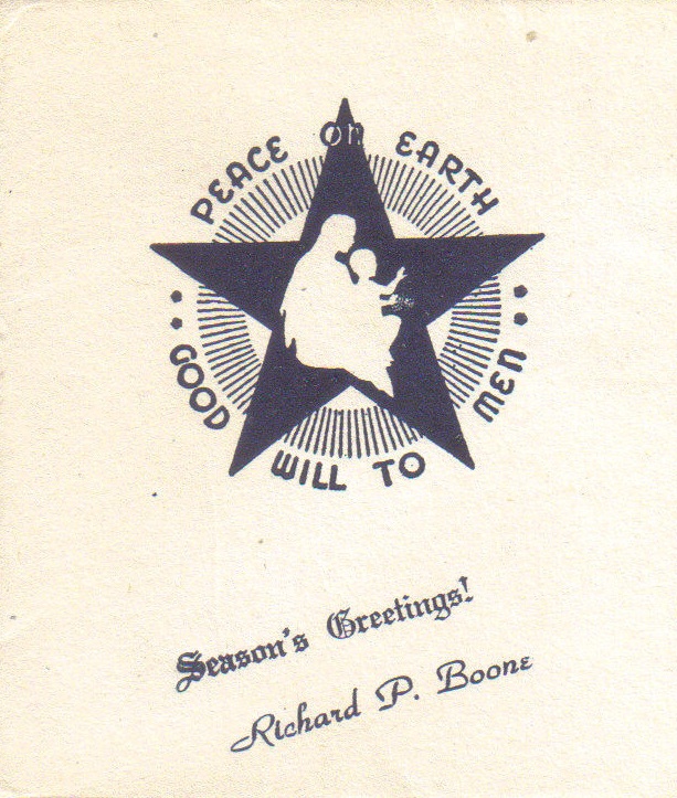 Peace on earth good will to men Season's greetings! Richard P. Boone |