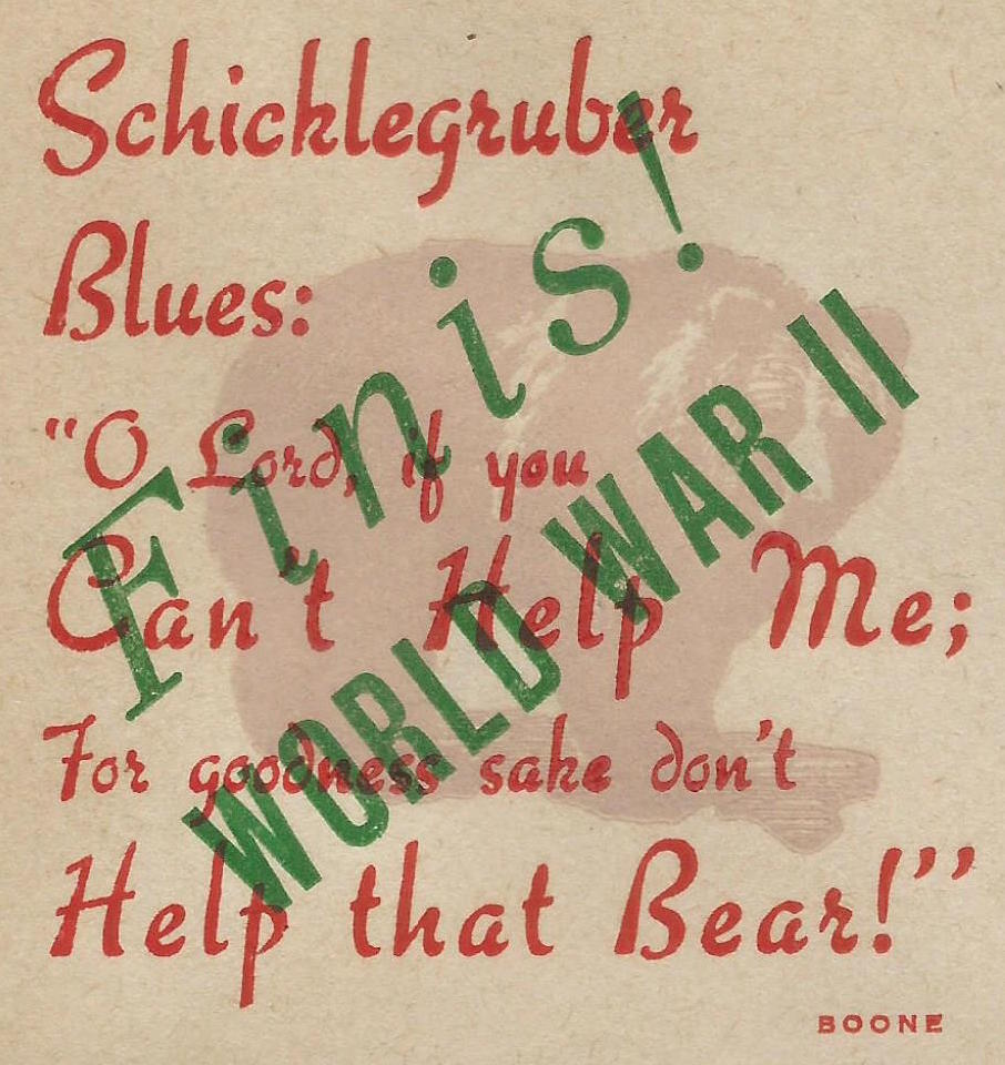 Schicklegruber blues "O Lord, if you can't help me; for goodness sake don't help the bear!" w/overprint |