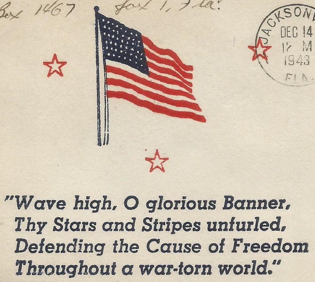 Wave high, O glorious banner Thy stars and stripes unfurled etc |
