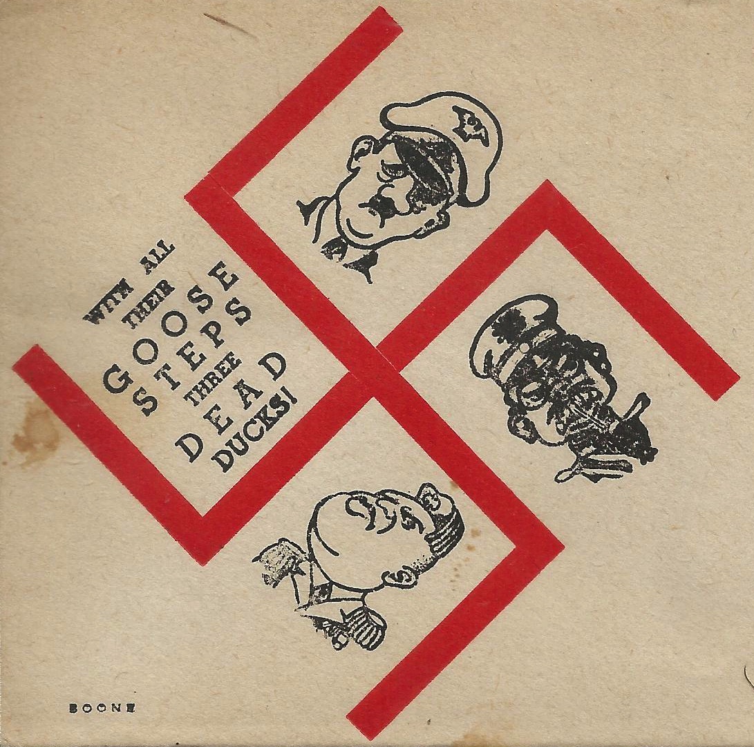 With all their goose steps ... Tojo Adolf Benito 'Three dead ducks' |